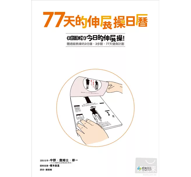 兩相對照起來,「超圖解! 今日的伸展操!」裡面的知識和觀念就顯得合乎時宜多了,同時,它的設計也非常短小精簡新穎現代。雖說日文翻譯書常有廢話很多的毛病(應該和日文這個語言有關),但是此書卻可將所有應該具備的伸展基本收錄在一本書裡,並且附上另一本「77天的伸展操日曆」(博客來所附之日曆封面),完全掌握了現代人愛說卻懶得做的性格,把七十七個伸展動作由易到難,分成七十七天以日曆提醒的方式慢慢做完。而且,它的日曆設計也非常適合注意力缺失的人使用(博客來所附之日曆解說),每頁除有今日伸展操及其主要伸展的肌肉,和此伸展操的目的,還有日文身體諺語、數字雜學、健康小常識和達成月曆,對於光讀文字就想睡覺無法學習的我來說,這樣的完全圖解有著很好的帶領作用,尤其健康小常識大多是以問答方式呈現,像是「暖身時必須仔細伸展?」「肌肉是從哪裡開始老化?」「減重必須先鍛鍊肌肉還是先進行有氧運動?」等七十七個小常識都讓人在無壓力的狀態下得到最新研究的答案(當然,也許三十年後這些答案又會不同了)。